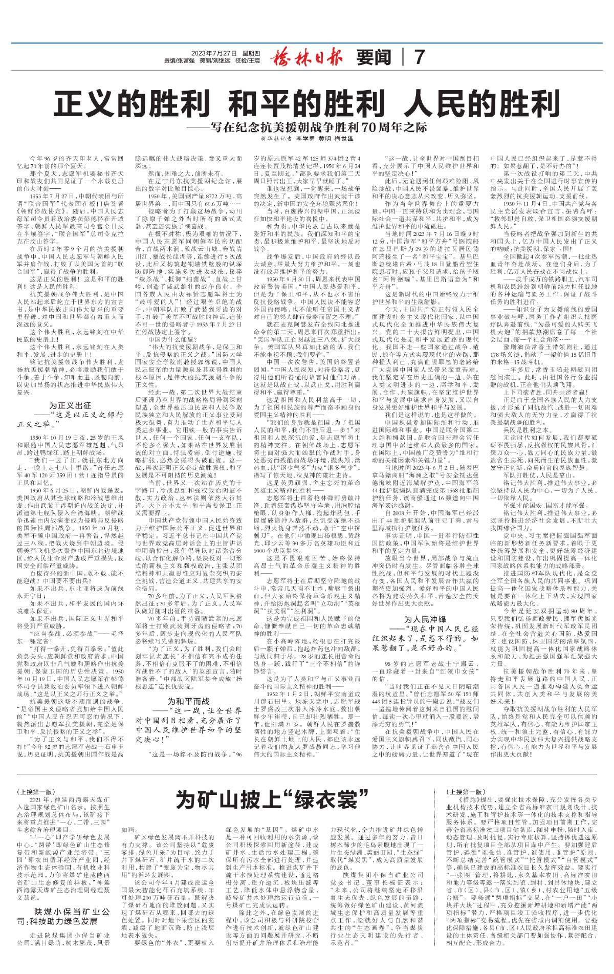 抗美援朝战争胜利70年来,坚持走和平发展道路的中国人民,正同各国人民一道推动构建人类命运共同体,共创人类和平与发展的美好未来!