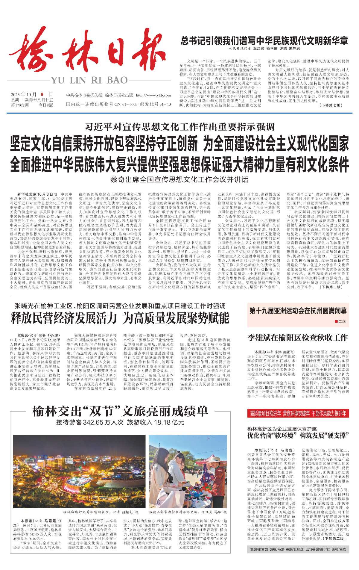 李雄斌强调,要全力以赴组织秋收,根据不同农作物成熟节点,合理安排秋粮收获,为丰产丰收打好基础。要加强农业气象服务,做好气温变化监测和霜冻雨情通报,充分利用晴好天气抓紧抢收,确保颗粒归仓。要科学进行田间管理,测算土地肥力,探索薯麦轮作等种植模式,有序扩大规模,促进经济效益和生态效益双提升。要拓展农产品销售渠道,打造区域公用品牌,不断提升榆林农产品的市场占有率和美誉度。