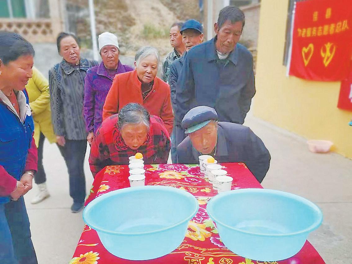 图为老人在参加趣味游戏活动。霍彦杉 摄