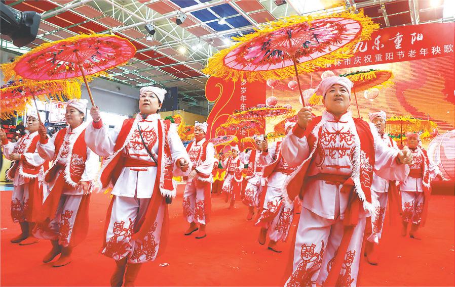 恰似春回人不老,尽情怡乐幸福来。举行此次重阳节秧歌展演赛交流活动,是榆林市卫健委、市老龄办在敬老月期间为广大老年朋友搭建的一个展示艺术风采和精神文化生活的平台,是贯彻落实积极应对人口老龄化的有效途径,引导着老年人积极面对老年生活,培育健康生活方式,增加交流交往,促进身心健康,增添家庭幸福,安享幸福晚年。也希望通过这种方式吸引更多老年朋友加入到秧歌、舞蹈等健身健体活动当中,弘扬时代新风、展示阳光心态、共享美好生活。同时呼吁社会各界都能关心关爱老年人,关注老龄事业发展,营造全社会尊老、敬老、爱老、助老的良好氛围!
