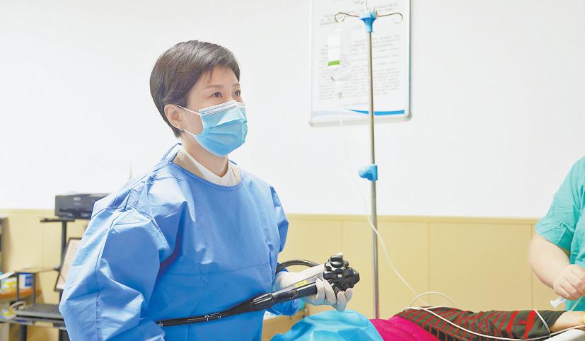 西交大一附院榆林医院内镜中心主任刘小玉在大柳塔试验区人民医院胃镜室开展胃肠镜检查