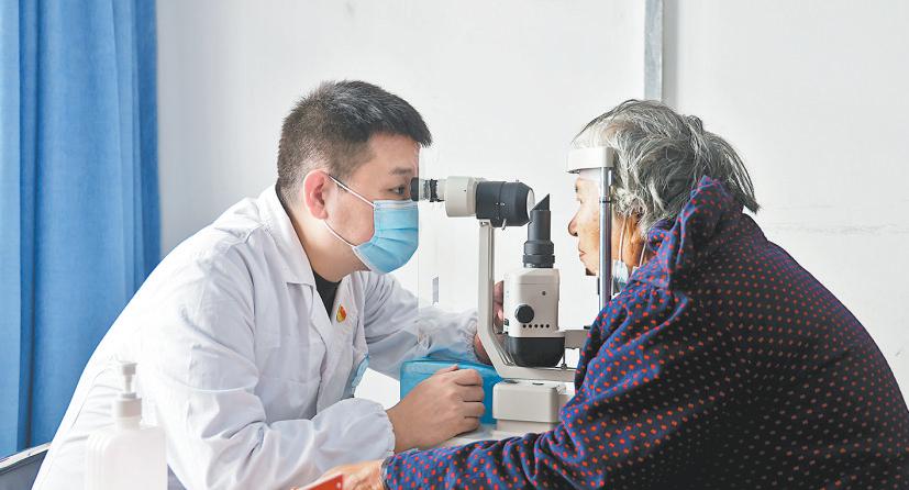 西交大一附院眼科刘钊教授为群众进行眼部检查