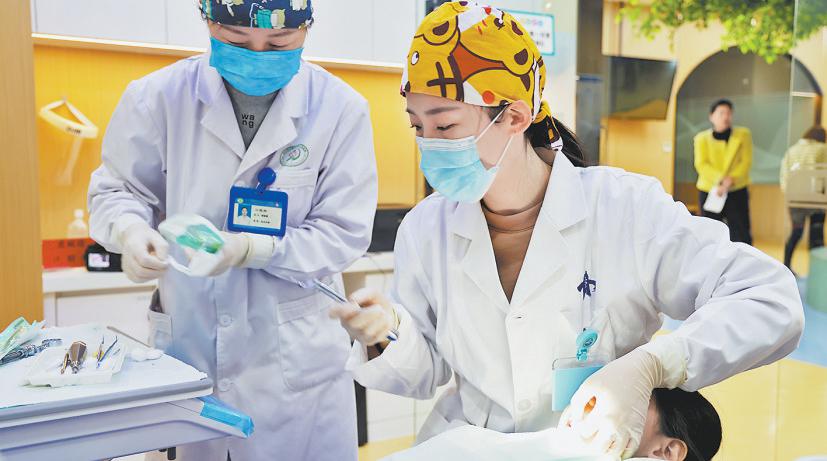 西交大一附院口腔科虎婉晴主治医师为群众进行口腔治疗