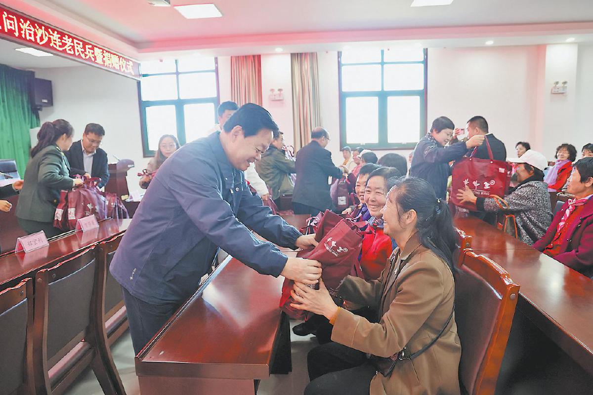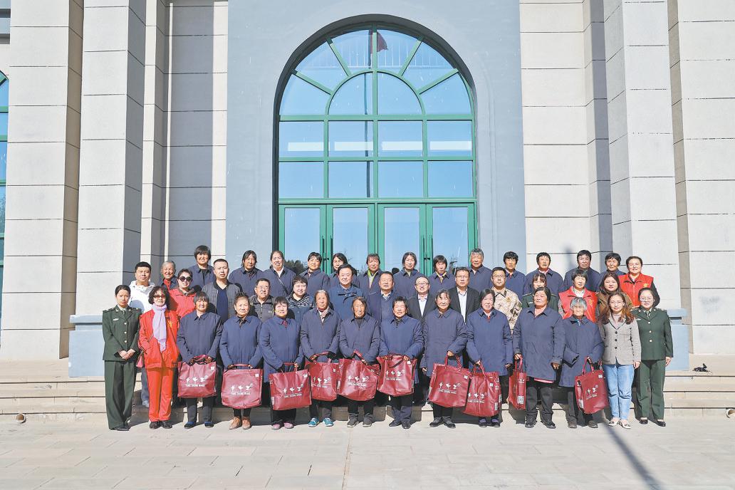 市慈善协会领导慰问补浪河女子民兵治沙连老民兵并合影留念