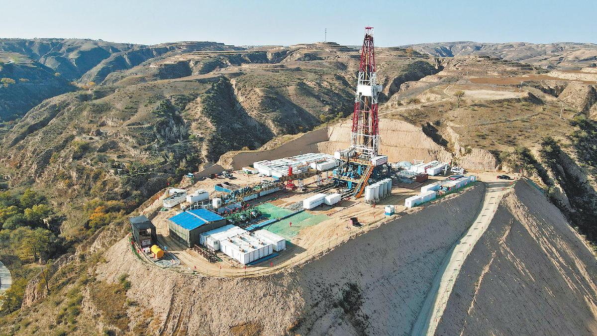 10月24日拍摄的神府深煤层大气田钻井作业现场(无人机照片)。 马腾 摄