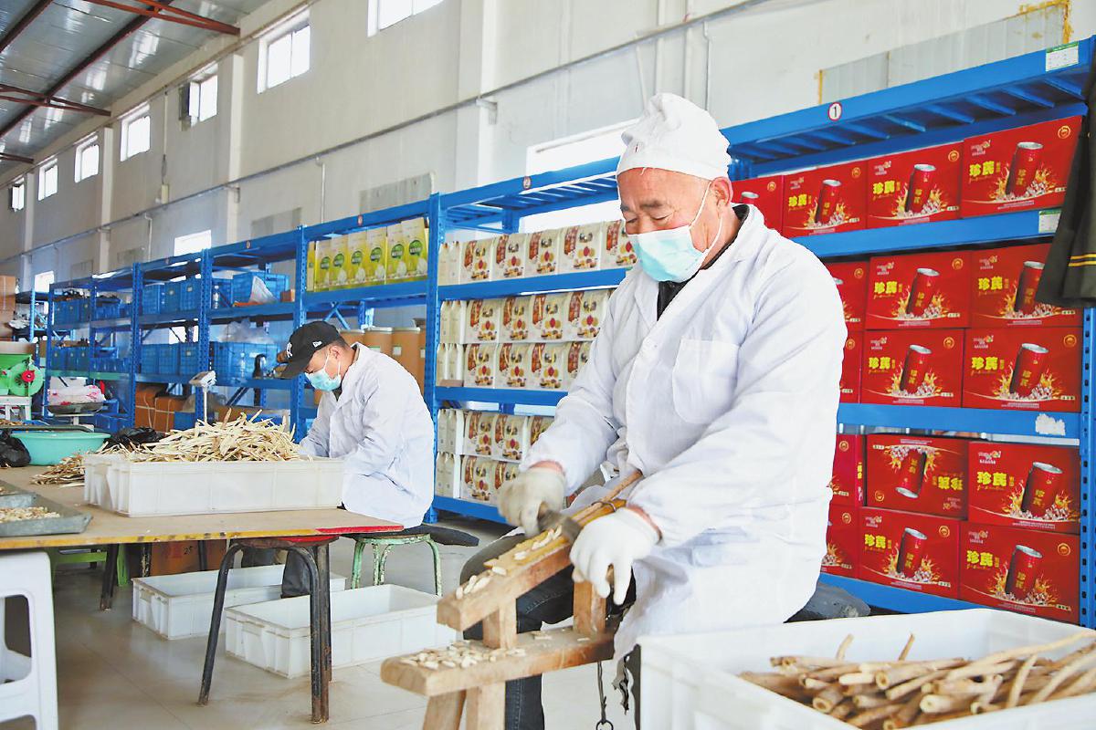 手工制作黄芪药片。李志东 摄