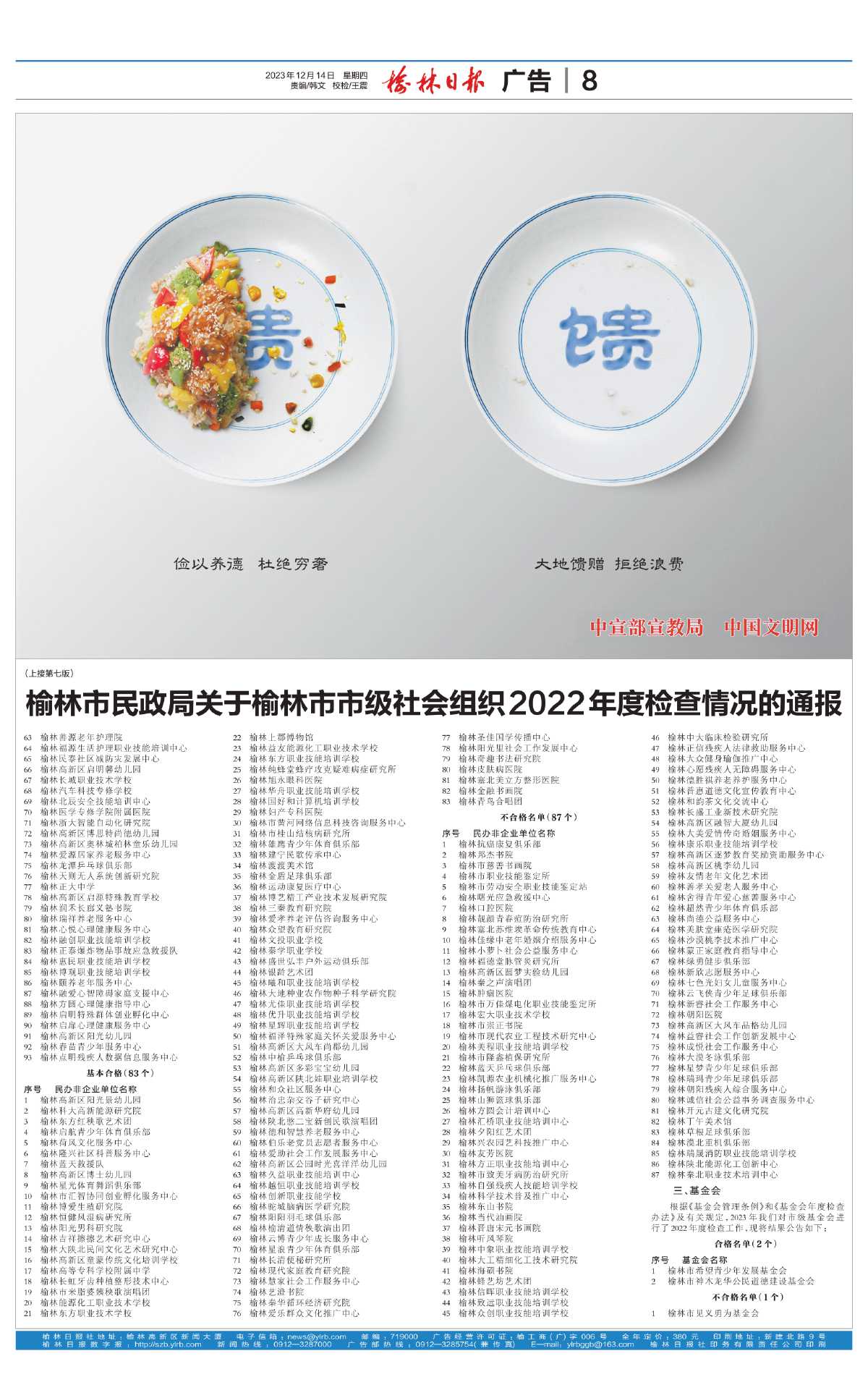 榆林市民政局关于榆林市市级社会组织2022年度检查情况的通报