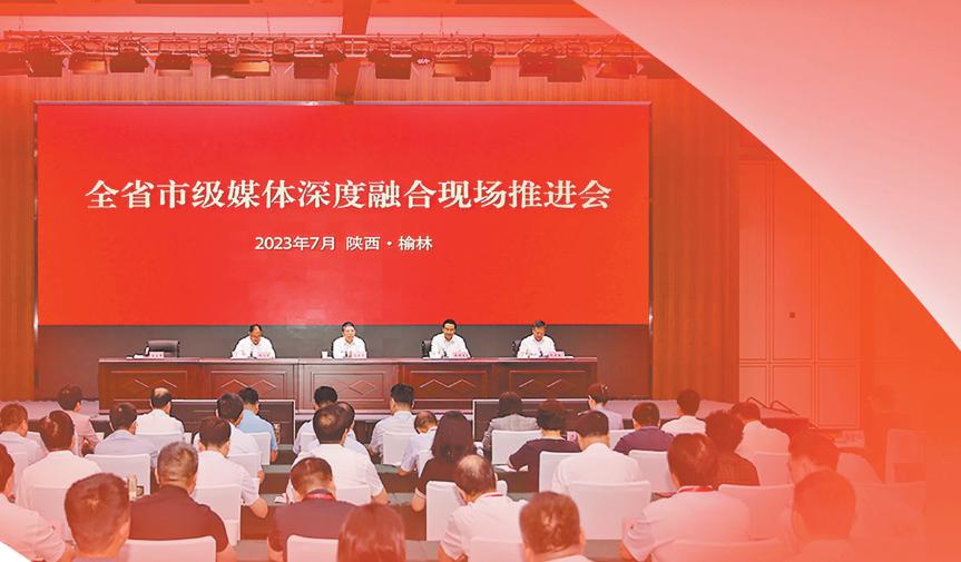 5 全省市级媒体深度融合现场推进会2023年7月18日至19日在榆林举行,与会代表深入榆林传媒中心现场观摩交流,媒体融合体制机制改革成为全省标杆示范。
