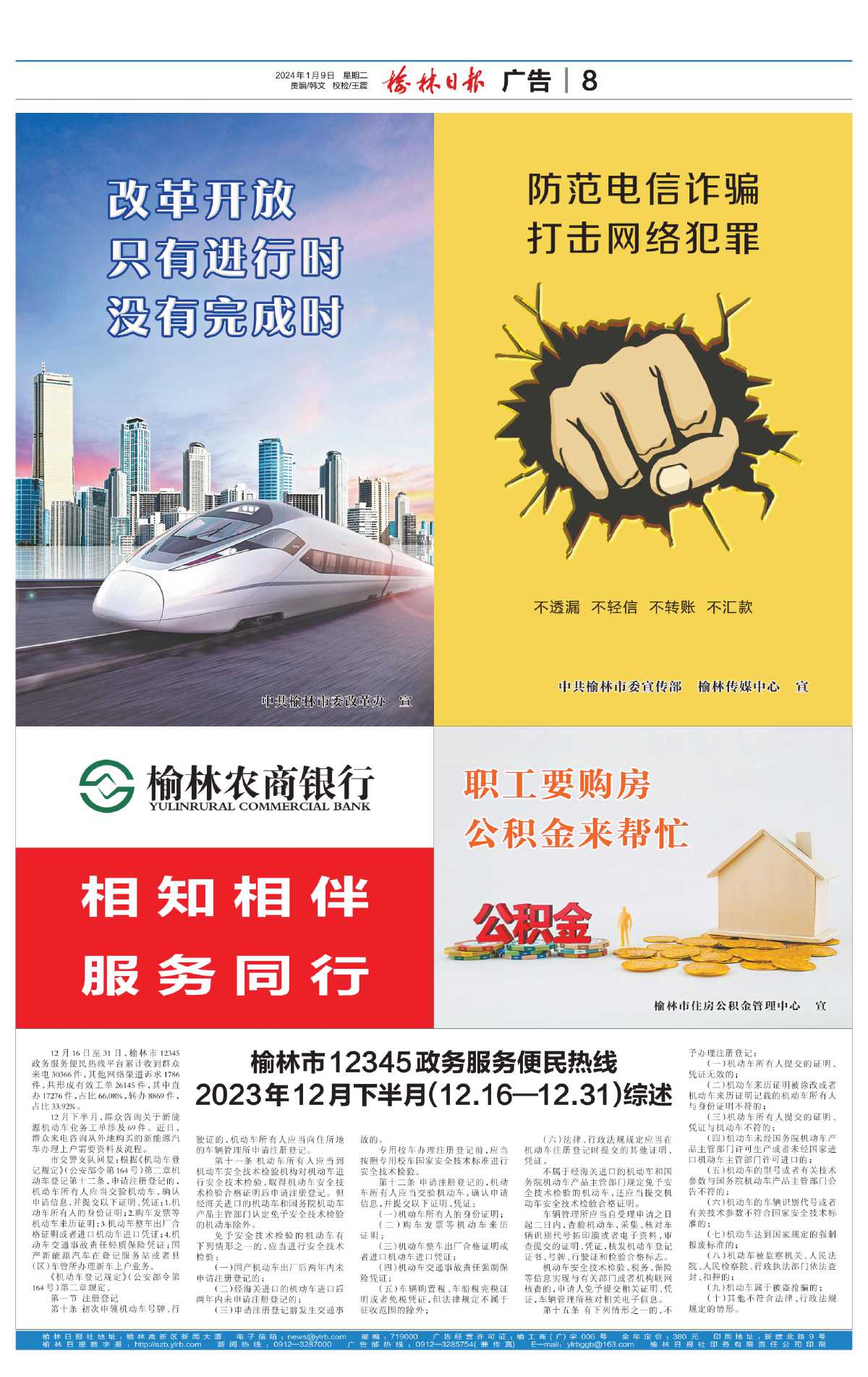 榆林市12345政务服务便民热线 2023年12月下半月(12.16—12.31)综述
