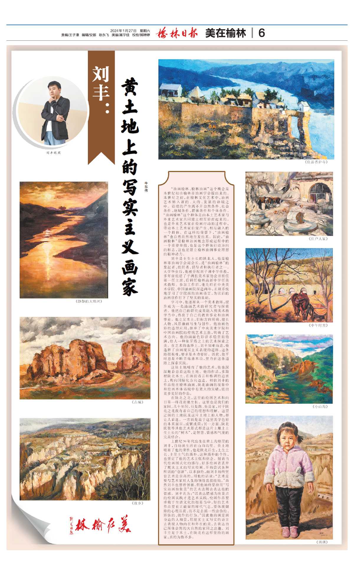 刘丰是土生土长的陕北人,他是榆林市油画学会副会长,是“油画榆林”的发起者、组织者、倡导者和执行者之一。大学毕业后,他被分配到子洲中学任教,多年前组建了子洲县美术家协会并担任第一任主席,后调任榆林高新中学任美术教师。参加工作后,他先后在中央美术学院、中国油画院深造两年,正规系统地学习了学院派的油画语言,为以后的油画创作打下了坚实的基础。