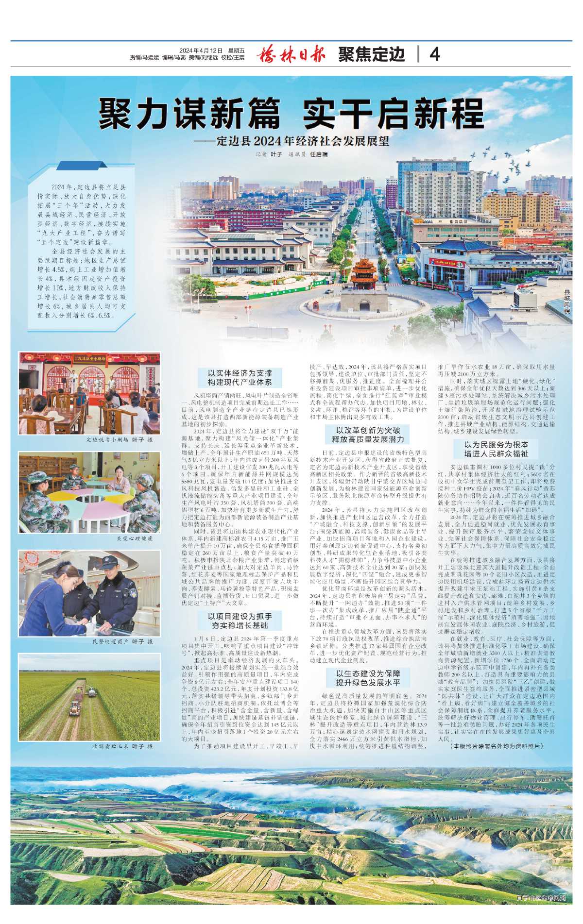 2024年,定边县将立足县情实际、放大自身优势,深化拓展“三个年”活动,大力发展县域经济、民营经济、开放型经济、数字经济,接续实施“九大产业工程”,奋力谱写“五个定边”建设新篇章。