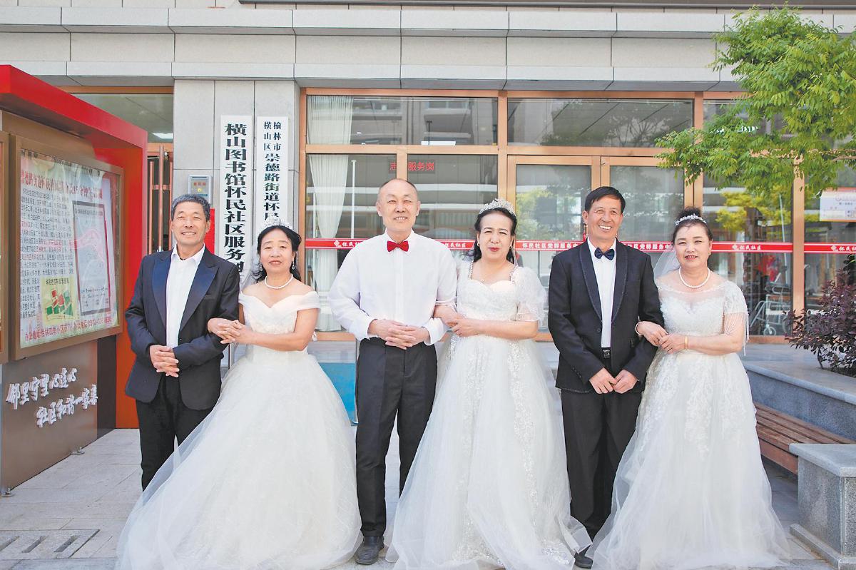 “我这辈子跟我老伴都没拍过婚纱照。今天我穿上婚纱,感觉自己又回到了年轻的时候。这一张张漂亮的照片,让我感觉到现在的日子很幸福。”拍摄结束后,居民张秀美看着电脑上的婚纱照,喜悦之情溢于言表。