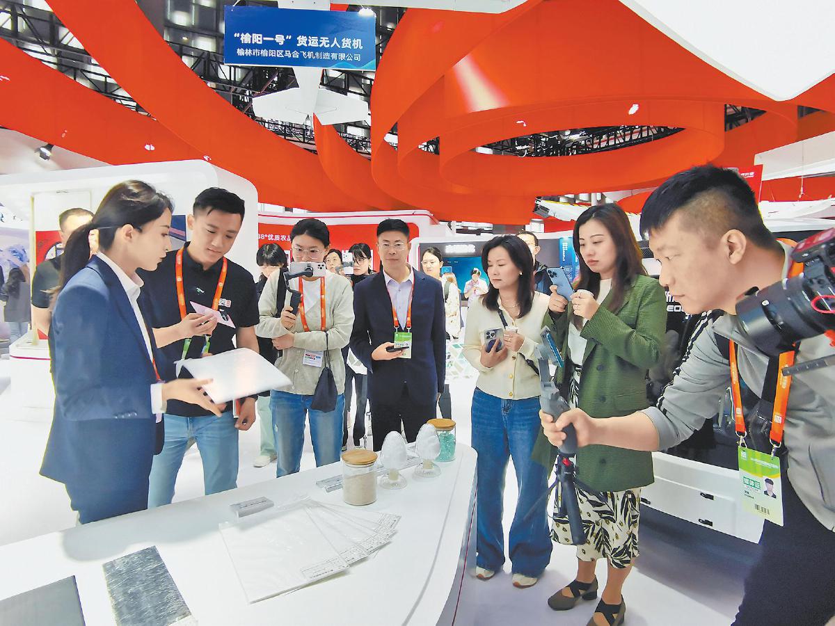 走进榆林展区,只见整体造型突出榆林建设“三大目标”元素,门头上装饰的大型宣传语十分醒目。展区内展示的一件件高端能化产品、优质农特产品、非遗作品,吸引着参观者驻足拍摄、咨询洽谈。