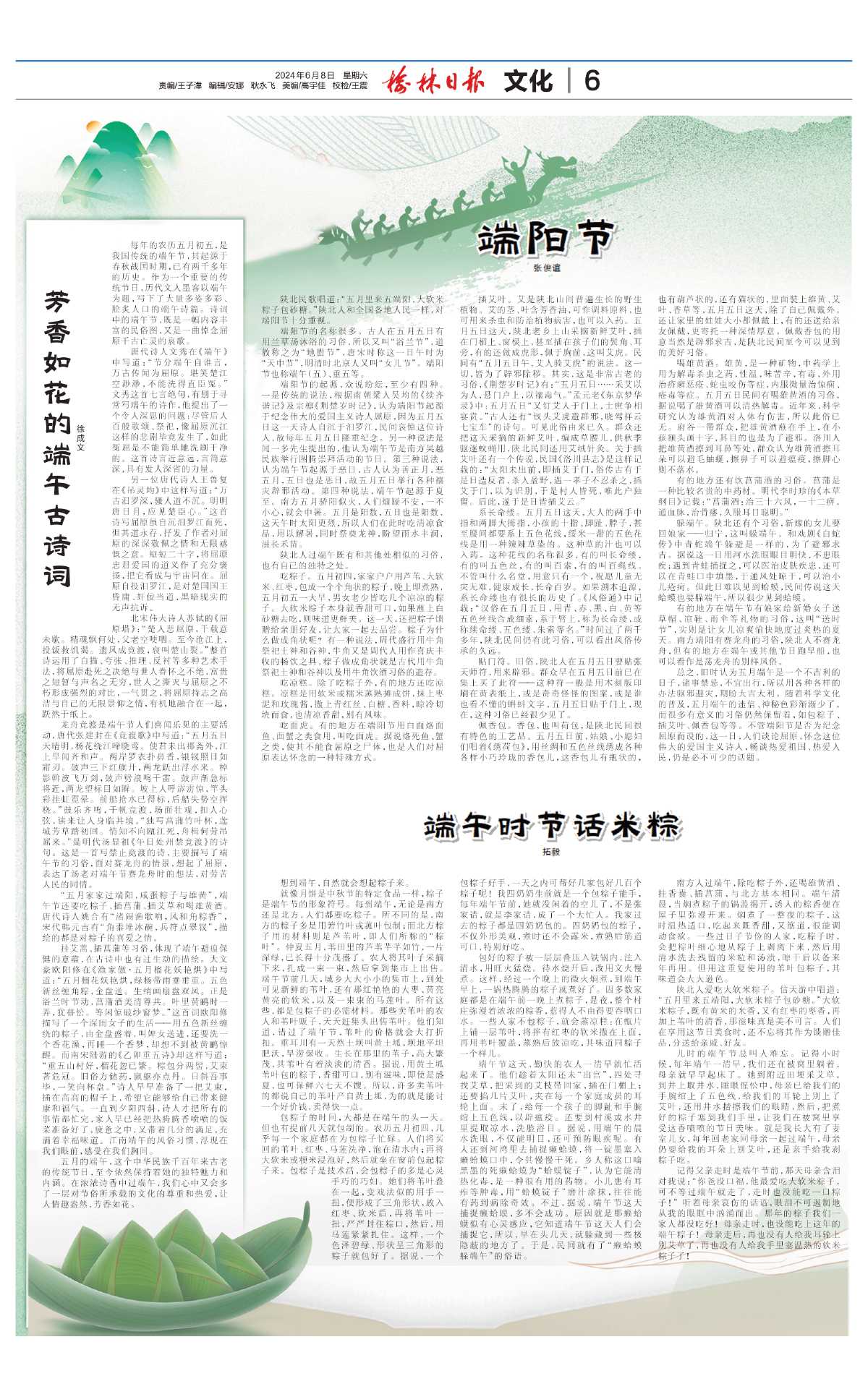 五月的端午,这个中华民族千百年来古老的传统节日,至今依然保持着她的独特魅力和内涵。在浓浓诗香中过端午,我们心中又会多了一层对节俗所承载的文化的尊重和热爱,让人情趣盎然,芳香如花。