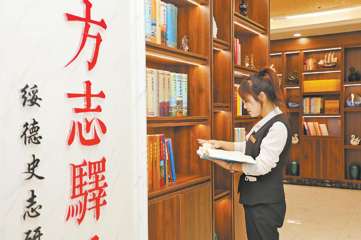 图为读者在方志驿站里阅读。