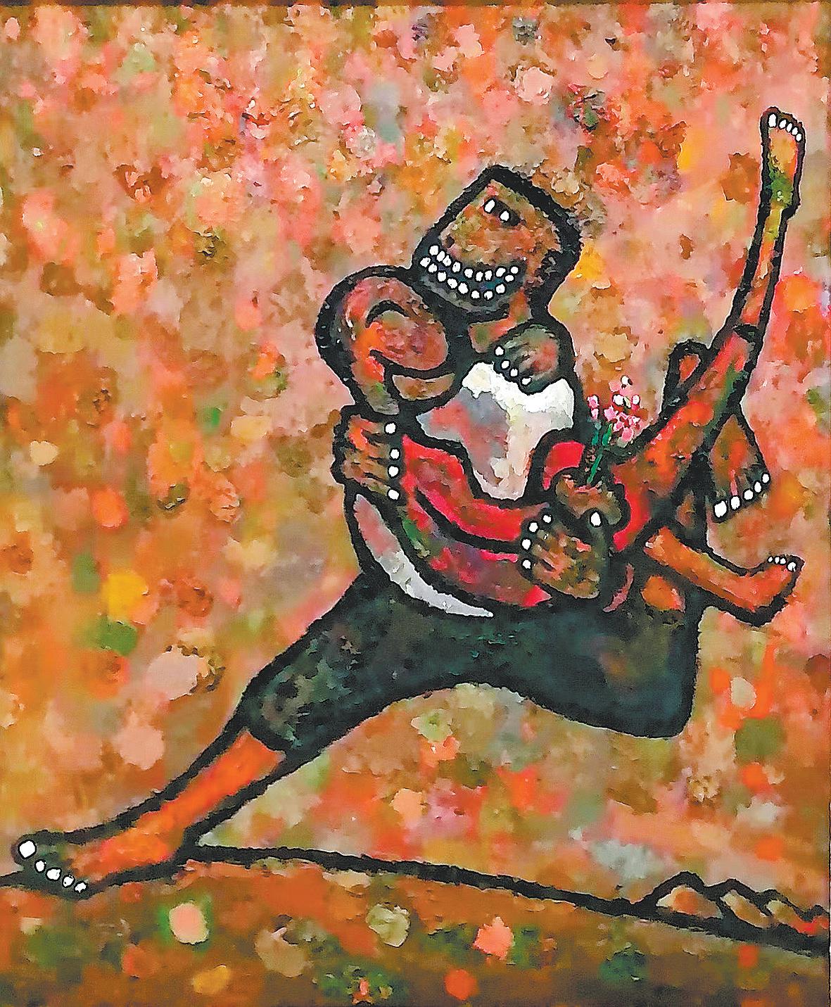 墙外高天的诱惑,墙内桃花源般惹人向往的生活,纠结是不可避免的。一边是高天厚土的壮美,一边是寂静丛林中的甜蜜,墙里墙外撕裂中的血腥时时溢出画笔,棱角与缤纷交替,野性与顺应互唤。