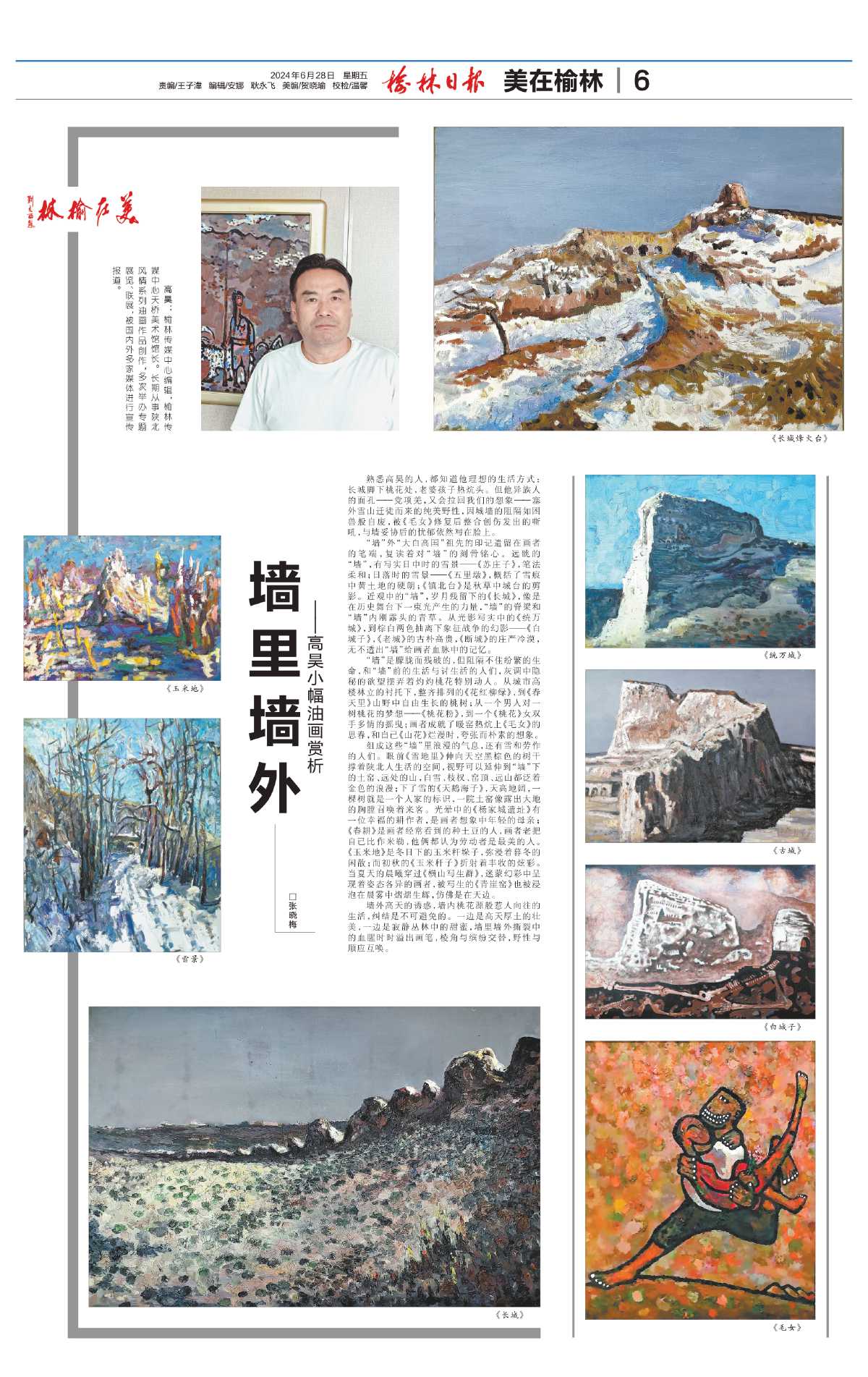高昊:榆林传媒中心编辑,榆林传媒中心天桥美术馆馆长。长期从事陕北风情系列油画作品创作,多次举办专题展览、联展,被国内外多家媒体进行宣传报道。