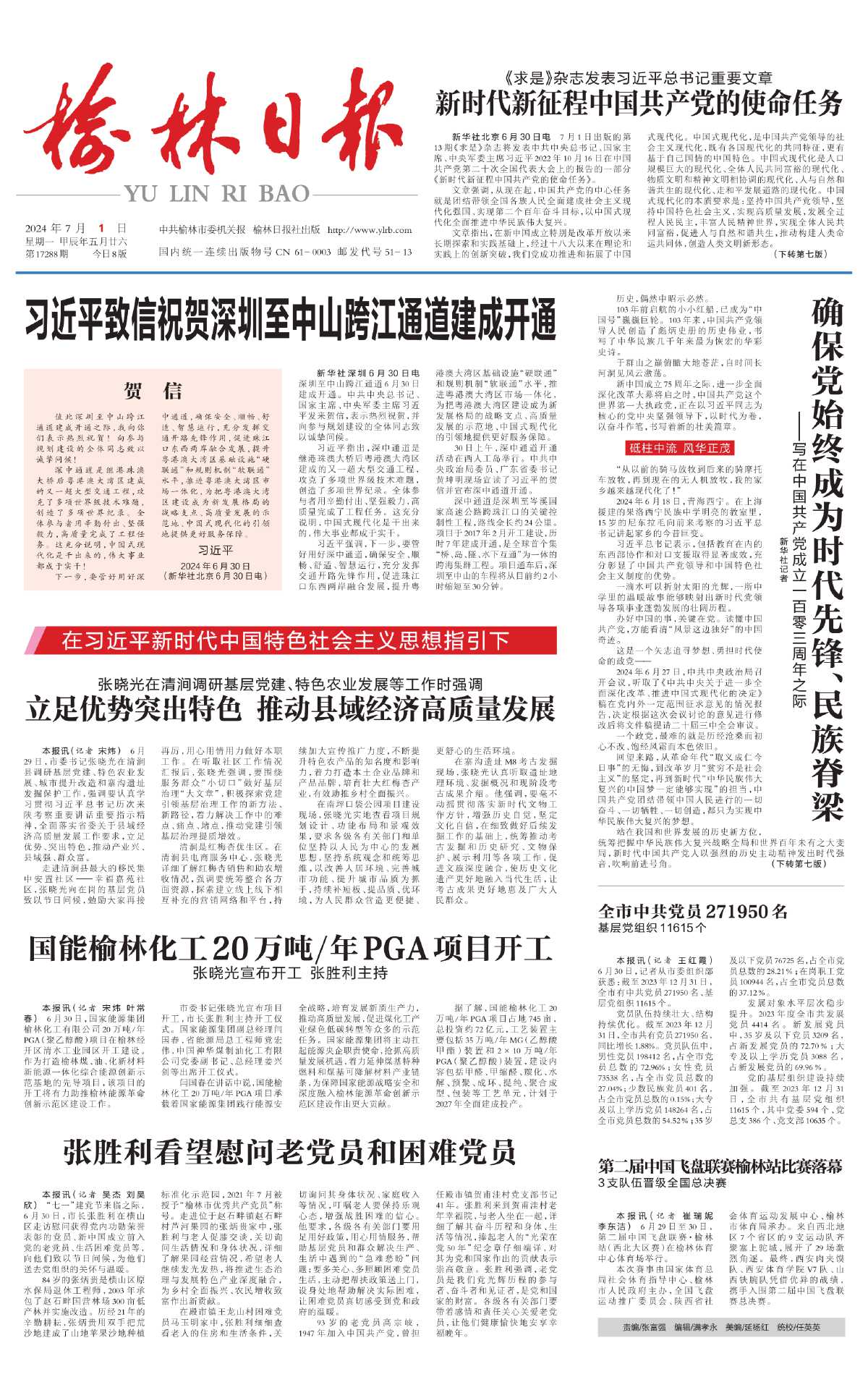 本报讯(记者 吴杰 刘昊欣) “七一”建党节来临之际,6月30日,市长张胜利在横山区走访慰问获得党内功勋荣誉表彰的党员、新中国成立前入党的老党员、生活困难党员等,向他们致以节日问候,为他们送去党组织的关怀与温暖。