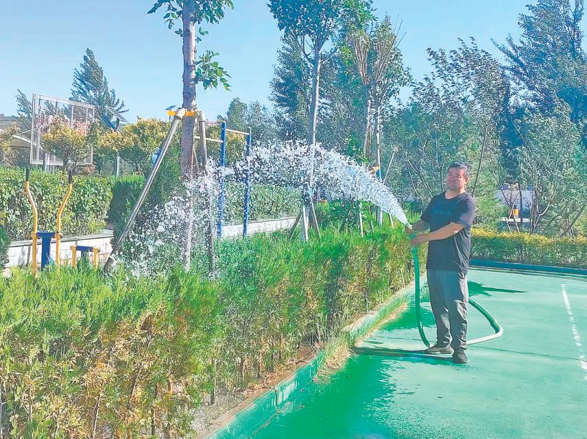 职工为“领养”的花木浇水。李继峰 摄