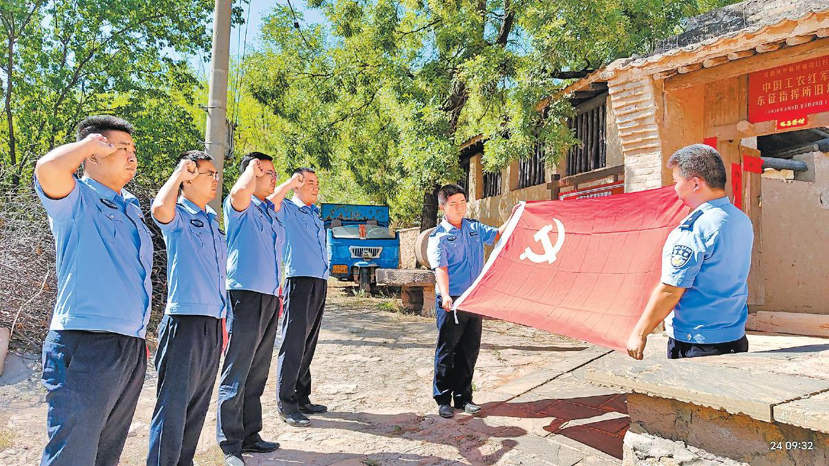 近日,绥德县公安局枣林坪派出所组织开展主题党日活动,弘扬建党精神,增强公安使命。