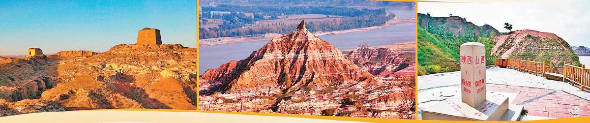 车子快驶入墙头地界时,黄河开始变得开阔平缓,河水也渐渐由浊黄变得清蓝,河边的绿树与农田明显多了起来。路旁的山势一改晋陕大峡谷处的山高坡陡、怪石嶙峋,呈现出连绵起伏、五彩斑斓、古老苍劲的丹霞地貌。