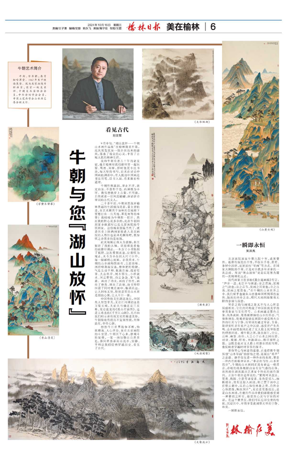 9月中旬,“湖山放怀——牛朝山水画作品展”在榆林隆重开幕,此次展览犹如一股扑面而来的清风,荡涤了观众的心灵,丰富了古城人民的精神生活。