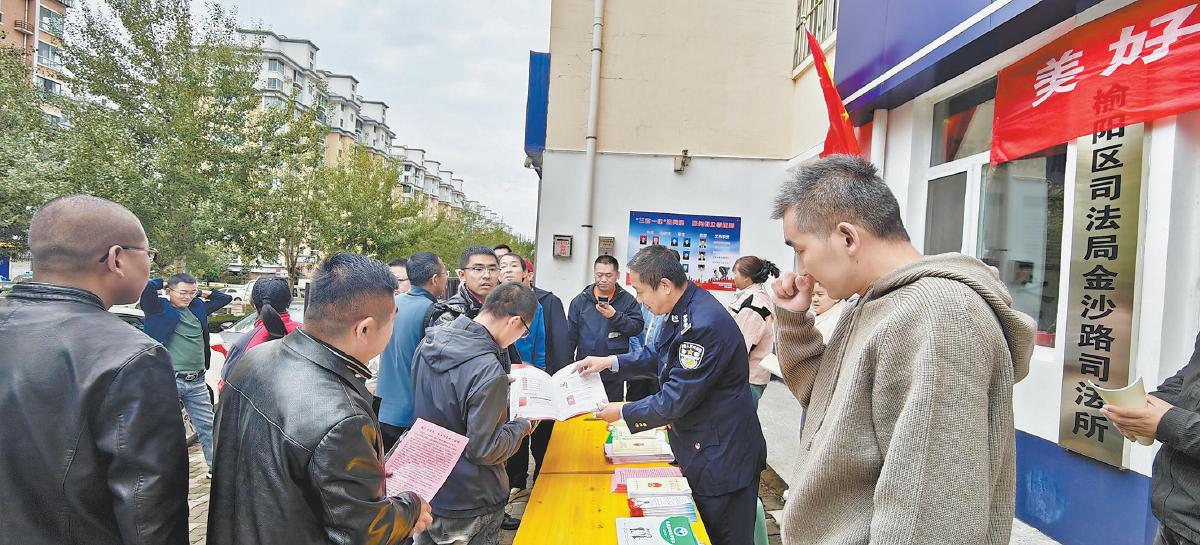 近日,榆阳区金沙路司法所组织开展“防范非法集资 守护你的钱袋子”宣传活动。