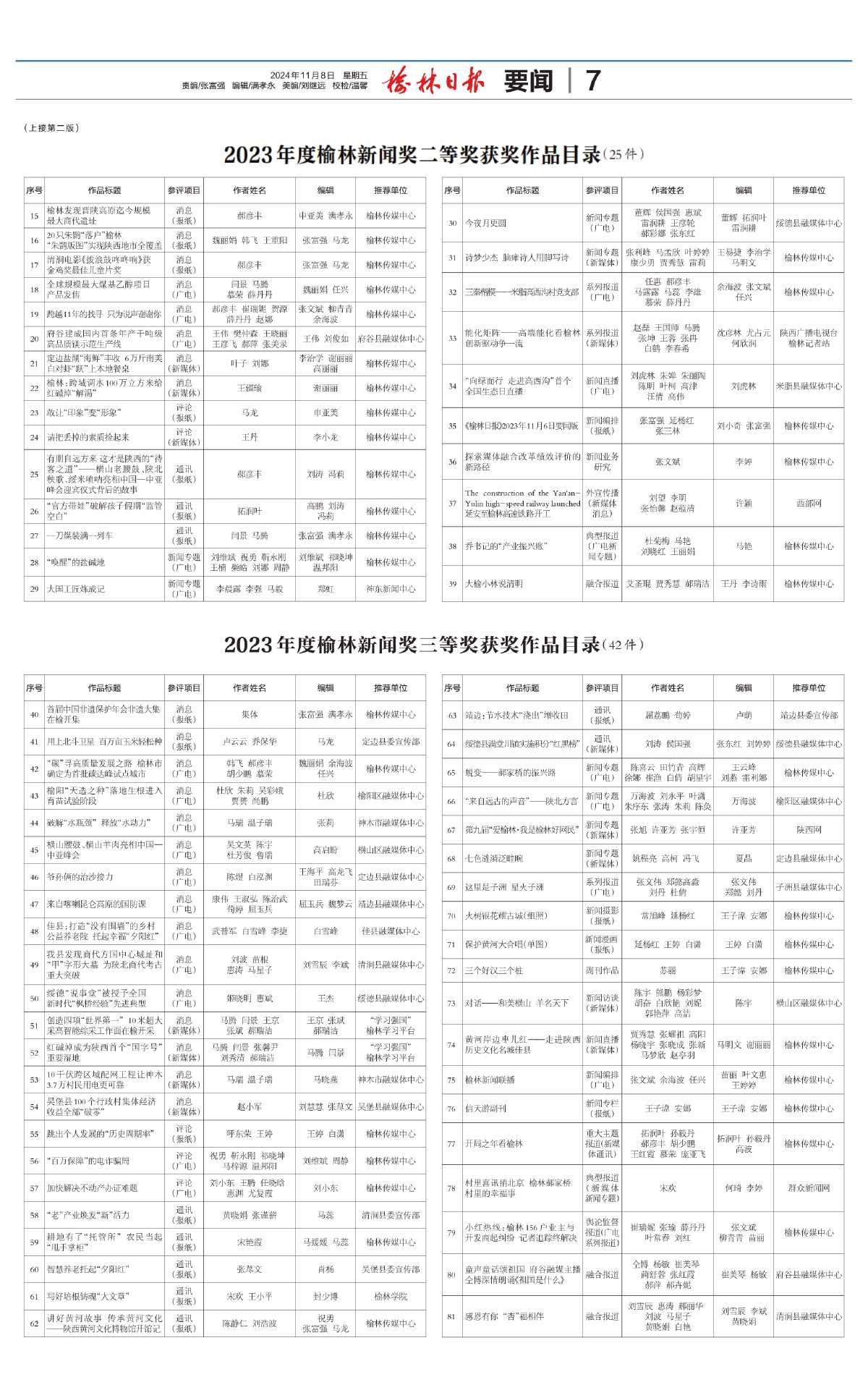 2023年度榆林市优秀新闻工作者、省级媒体驻榆记者站先进个人、榆林新闻奖评选结果通报