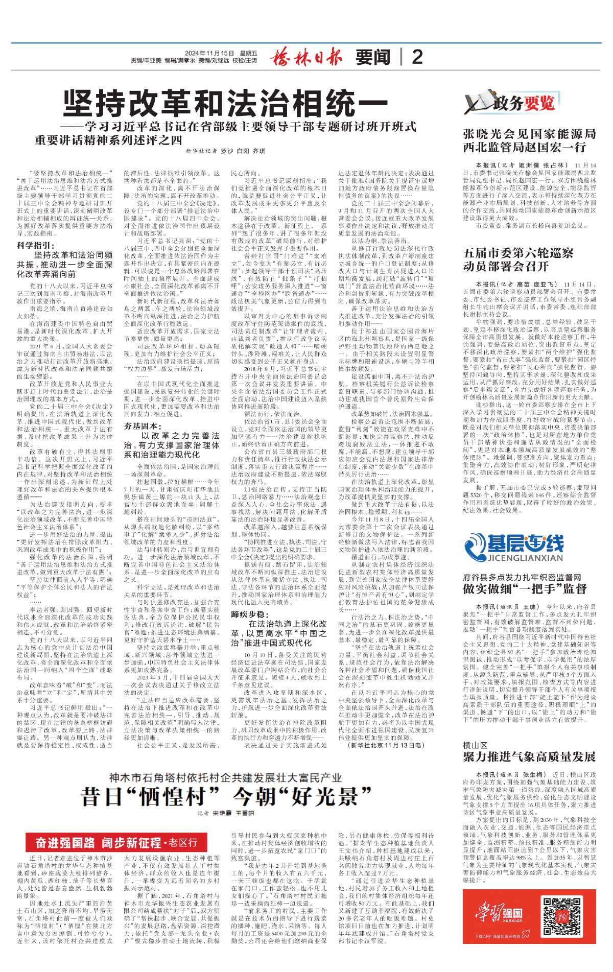 本报讯(记者 姬洲僕 张占林) 11月14日,市委书记张晓光在榆会见国家能源局西北监管局党组书记、局长赵国宏一行。双方围绕榆林能源革命创新示范区建设、能源安全、能源监管等方面进行了深入交流,表示将持续深化双方在能源产业布局规划、科技创新、人才培养等方面的合作交流,共同推动国家能源革命创新示范区建设取得更大成效。