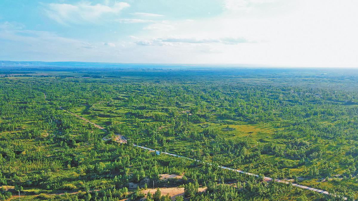 地处毛乌素沙漠边缘的定边县狼窝沙,从原来的荒沙窝变成了林海绿洲。李志东 摄