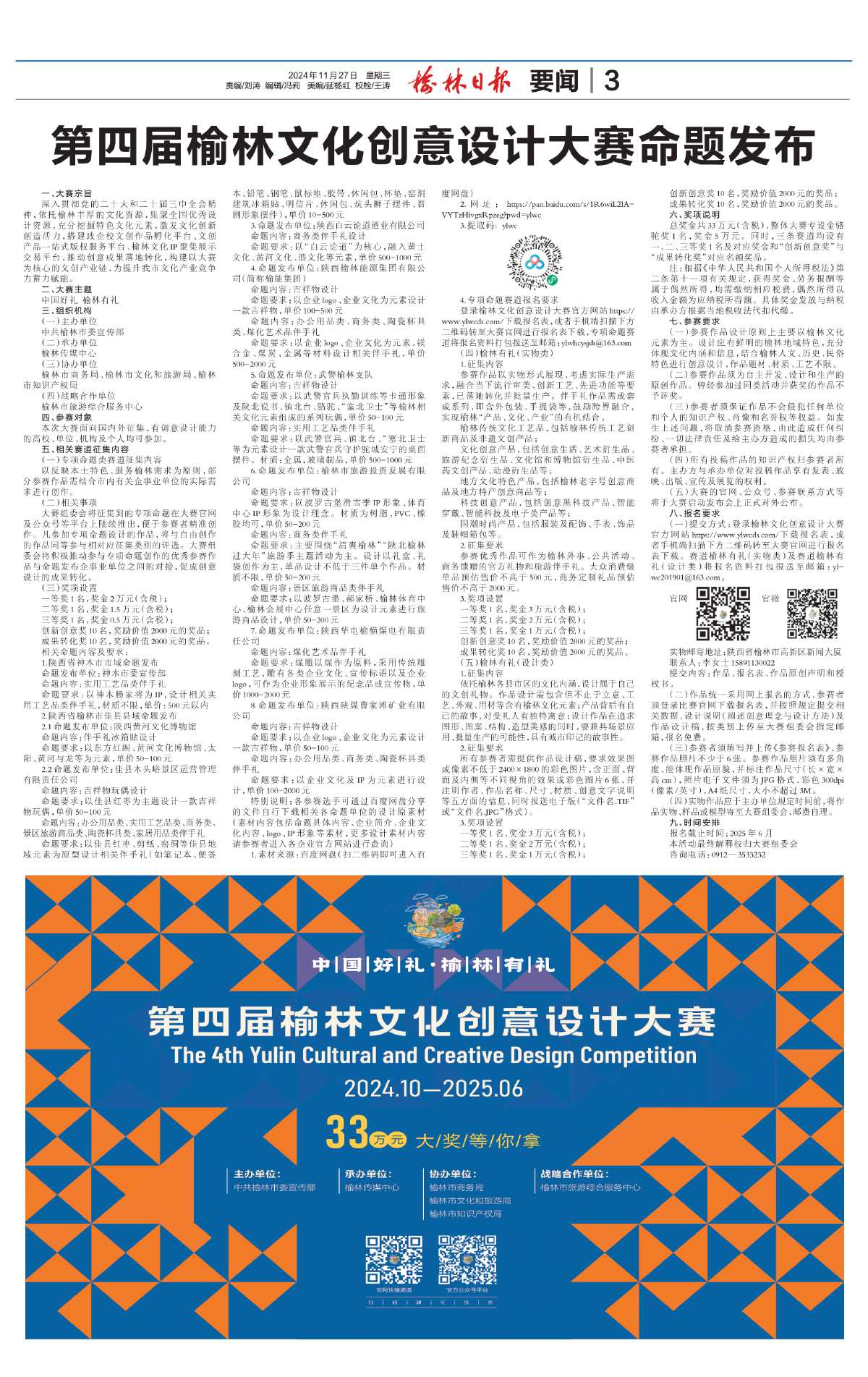 以反映本土特色、服务榆林需求为原则,部分参赛作品需结合市内有关企事业单位的实际需求进行创作。