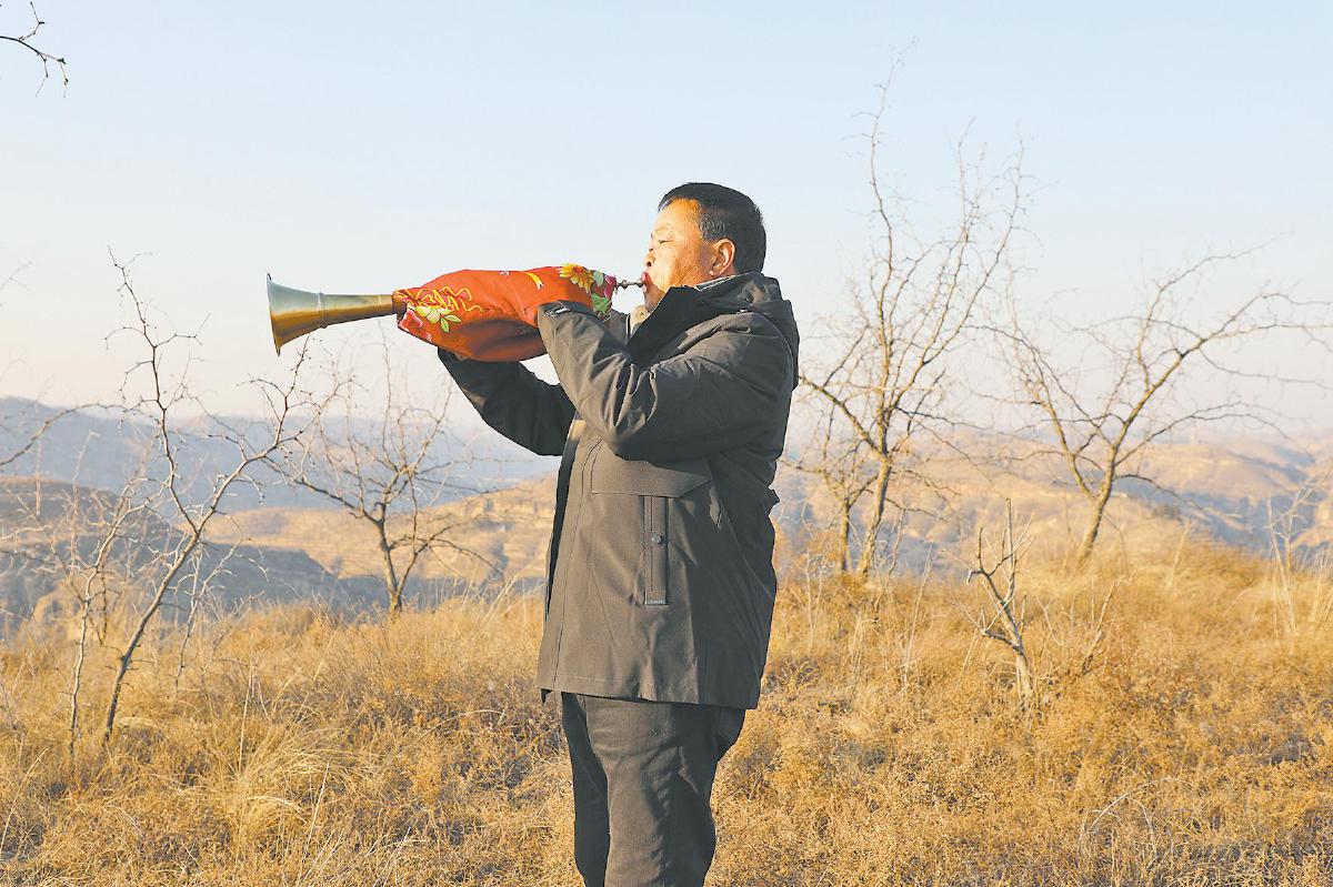 党玉生在吹奏唢呐。王姣 摄