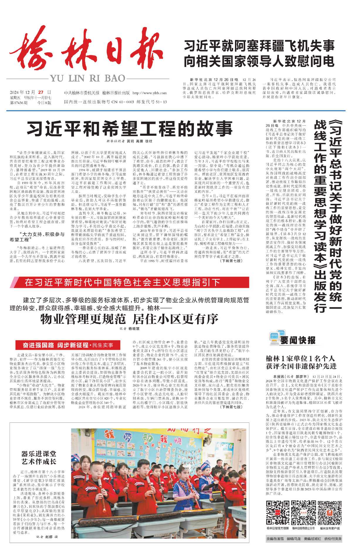 本报讯(记者 郝彦丰) 12月23日至24日,2024年全国非物质文化遗产保护工作会议在北京召开。会上,文化和旅游部发布《关于表彰全国非物质文化遗产保护工作先进集体和先进个人的决定》,并为受表彰者授牌颁证。陕西共有2个集体、5名个人荣膺殊荣。其中,榆林市文化和旅游局被评为先进集体,榆阳区区长崔飞被评为先进个人。