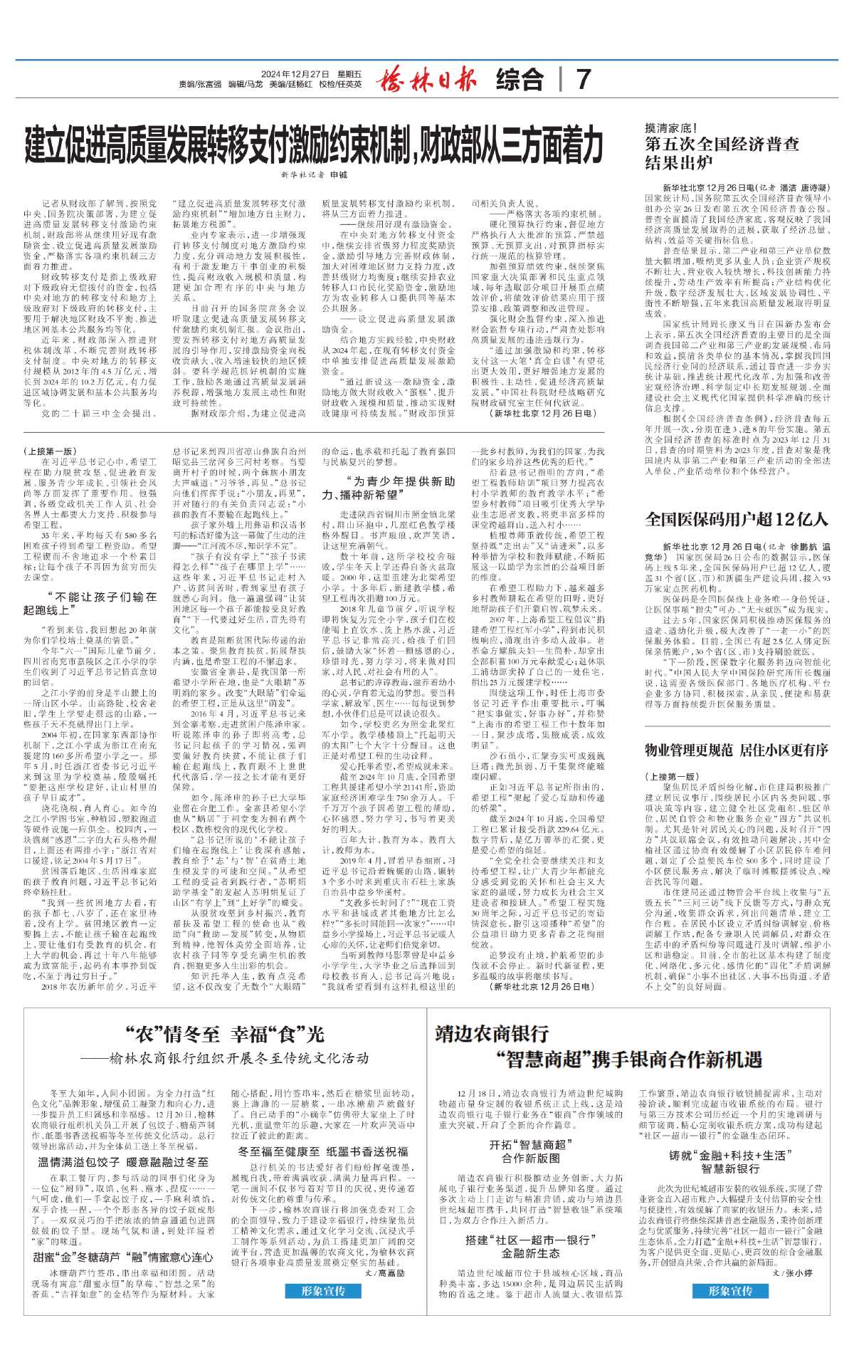 普查结果显示,第二产业和第三产业单位数量大幅增加,吸纳更多从业人员;企业资产规模不断壮大,营业收入较快增长,科技创新能力持续提升,劳动生产效率有所提高;产业结构优化升级,数字经济发展壮大,区域发展协调性、平衡性不断增强,五年来我国高质量发展取得明显成效。