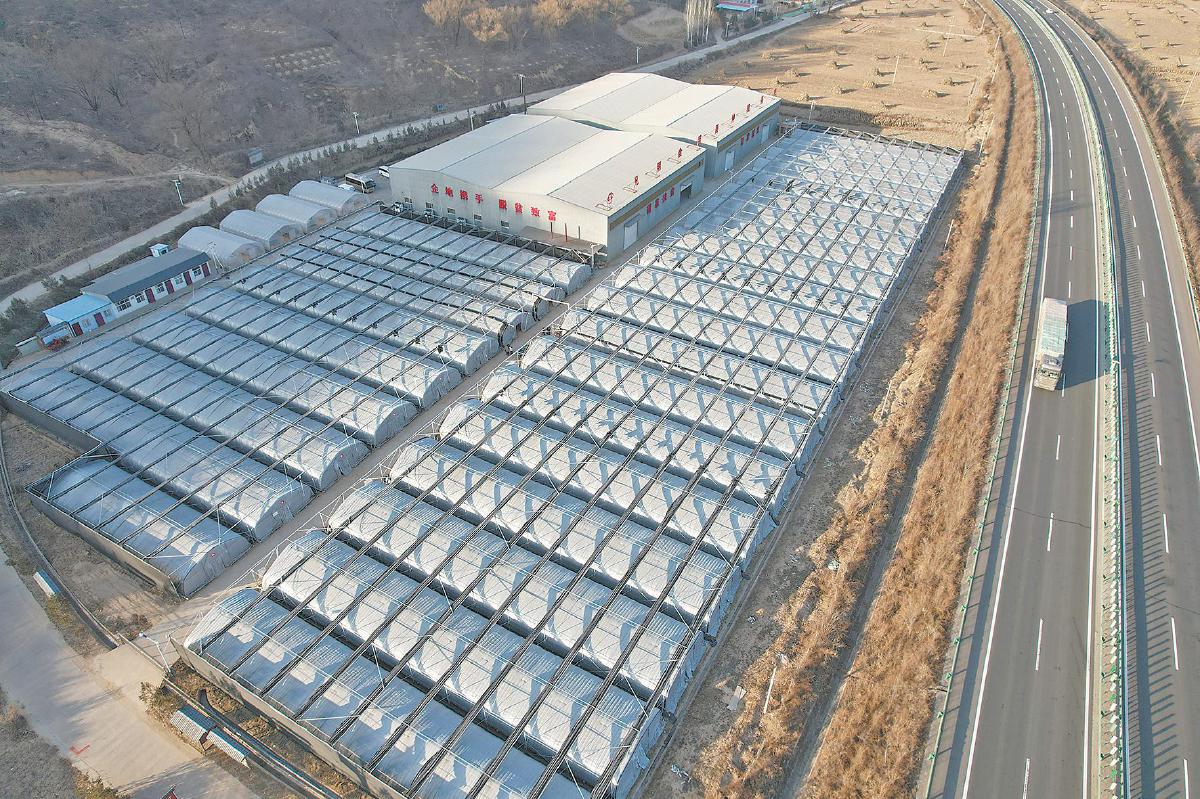 董家圪崂村菌菇大棚基地。(无人机照片) 陈静仁 摄