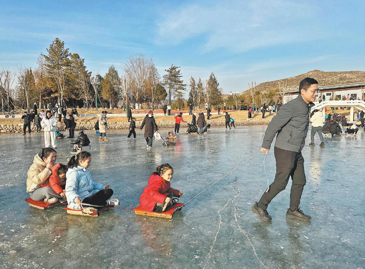 近日,神木市杏花滩公园热闹非凡,不少市民带着孩子来到这里滑冰健身,尽情享受冰上运动的乐趣。