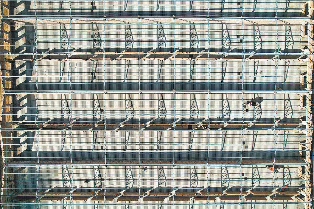 西马家沟村生猪养殖基地建设现场(无人机照片)。陈静仁 摄