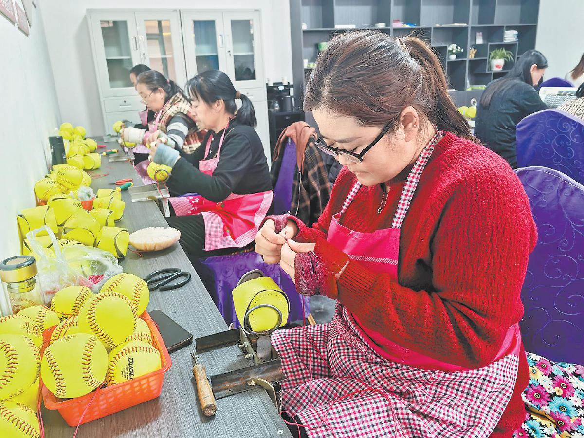 社区居民在加工垒球。 张谨新 摄