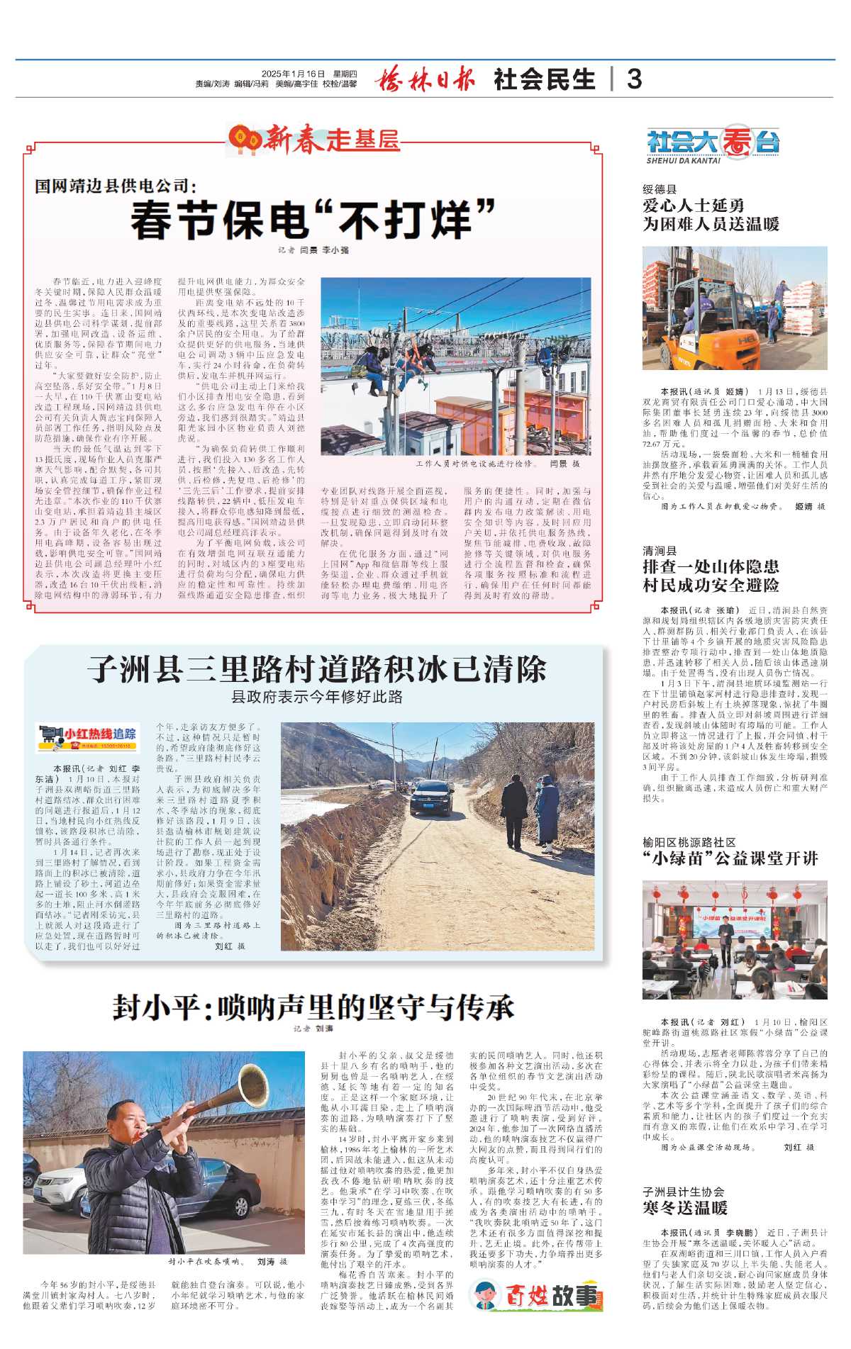 本报讯(记者 刘红 李东洁) 1月10日,本报对子洲县双湖峪街道三里路村道路结冰、群众出行困难的问题进行报道后,1月12日,当地村民向小红热线反馈称,该路段积冰已清除,暂时具备通行条件。