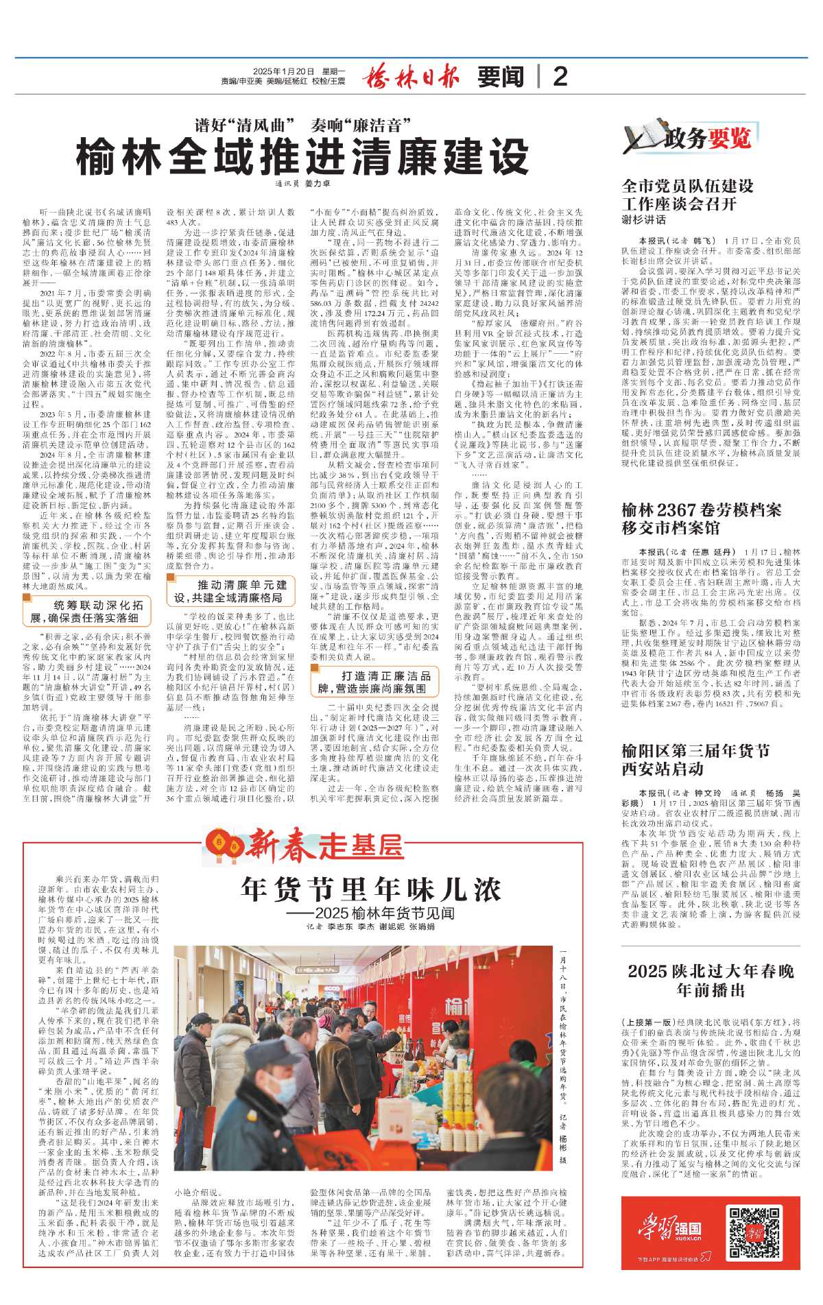 乘兴而来办年货,满载而归迎新年。由市农业农村局主办、榆林传媒中心承办的2025榆林年货节在中心城区喜洋洋时代广场启幕后,迎来了一批又一批置办年货的市民,在这里,有小时候喝过的米酒、吃过的油馍馍、磕过的瓜子,不仅有美味儿更有年味儿。