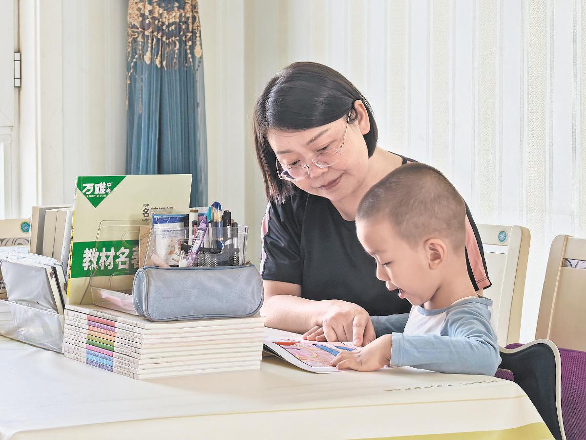 吝晓娟陪孩子一起读绘本。 李东洁 摄
