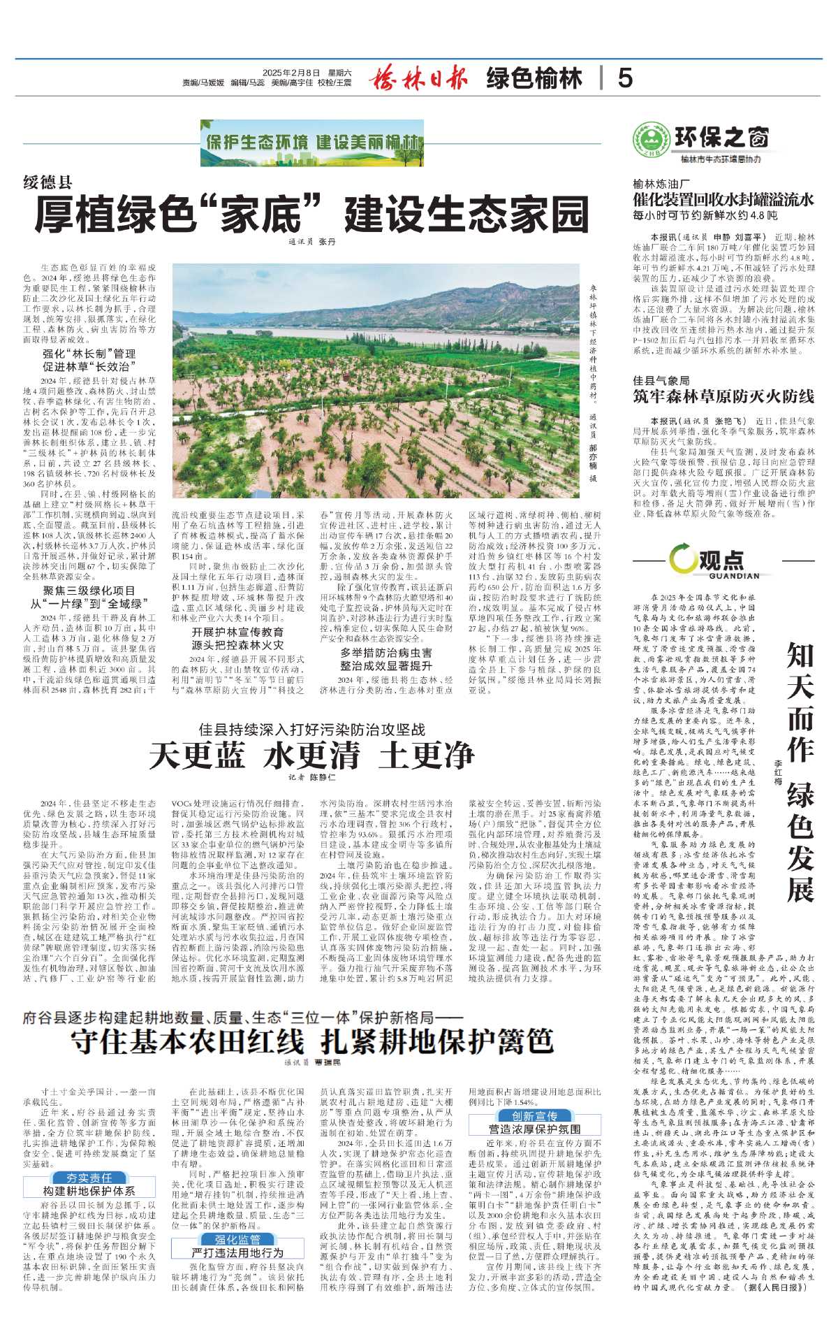 生态底色彰显百姓的幸福成色。 2024年,绥德县将绿色生态作为重要民生工程,紧紧围绕榆林市防止二次沙化及国土绿化五年行动工作要求,以林长制为抓手,合理规划、统筹安排、狠抓落实,在绿化工程、森林防火、病虫害防治等方面取得显著成效。