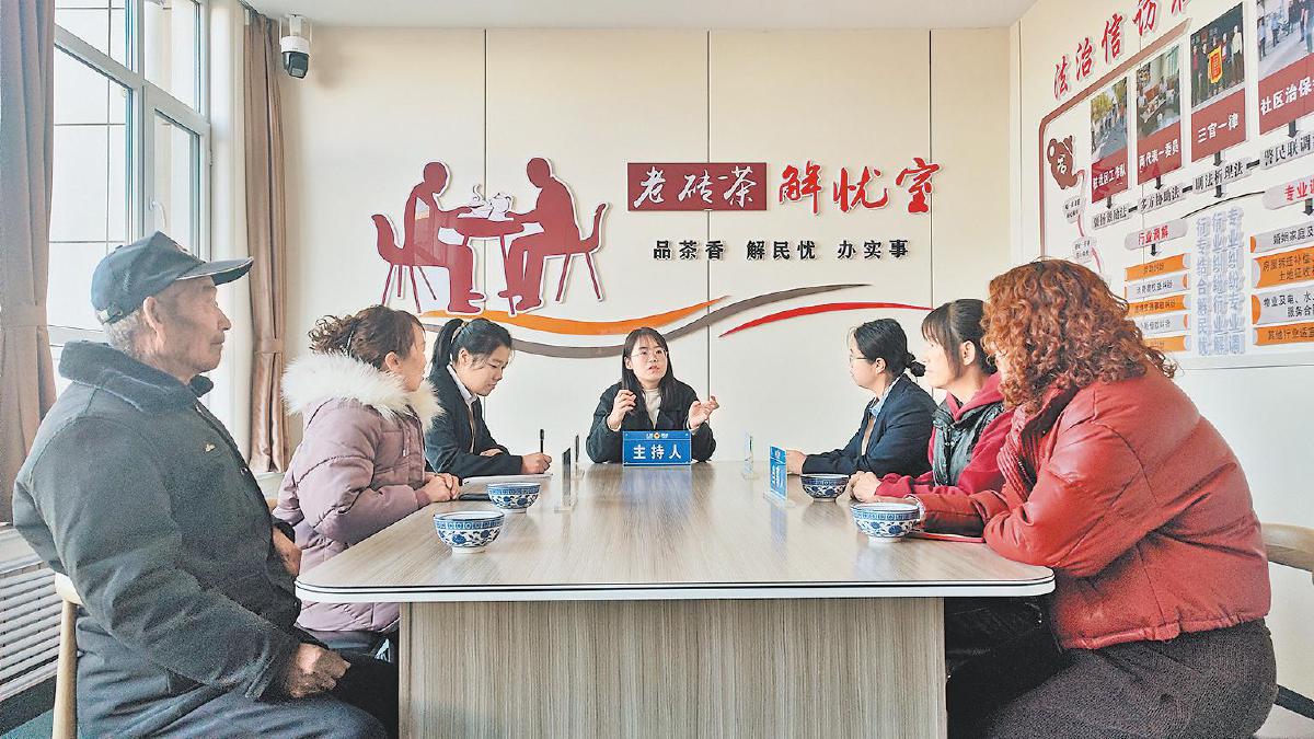 东新社区党总支书记刘克文向记者介绍说:“我们社区是移民搬迁社区,存在着小区物业矛盾多、困难人群需求多、邻里家庭纠纷多、就业创业门路少、基础设施配备少的‘三多两少’现状。为此,社区精心打造了‘老砖茶’解忧室,并形成了以‘老’为道、源头集纷,以‘砖’为正、高效解纷,以‘茶’为媒、跟踪消纷的‘老砖茶’矛盾解纷法,切实有效地化解了社区的各类矛盾纠纷。”