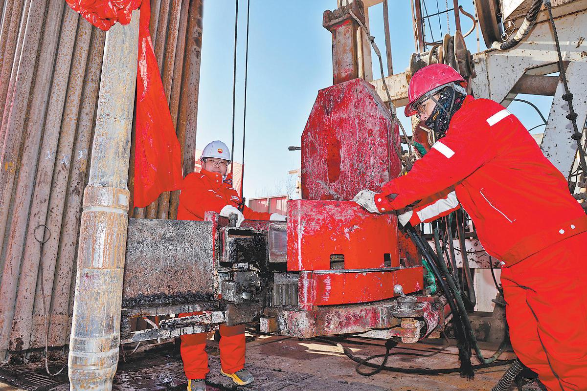 钻井工人调整设备做好开钻准备。钟文玲 摄