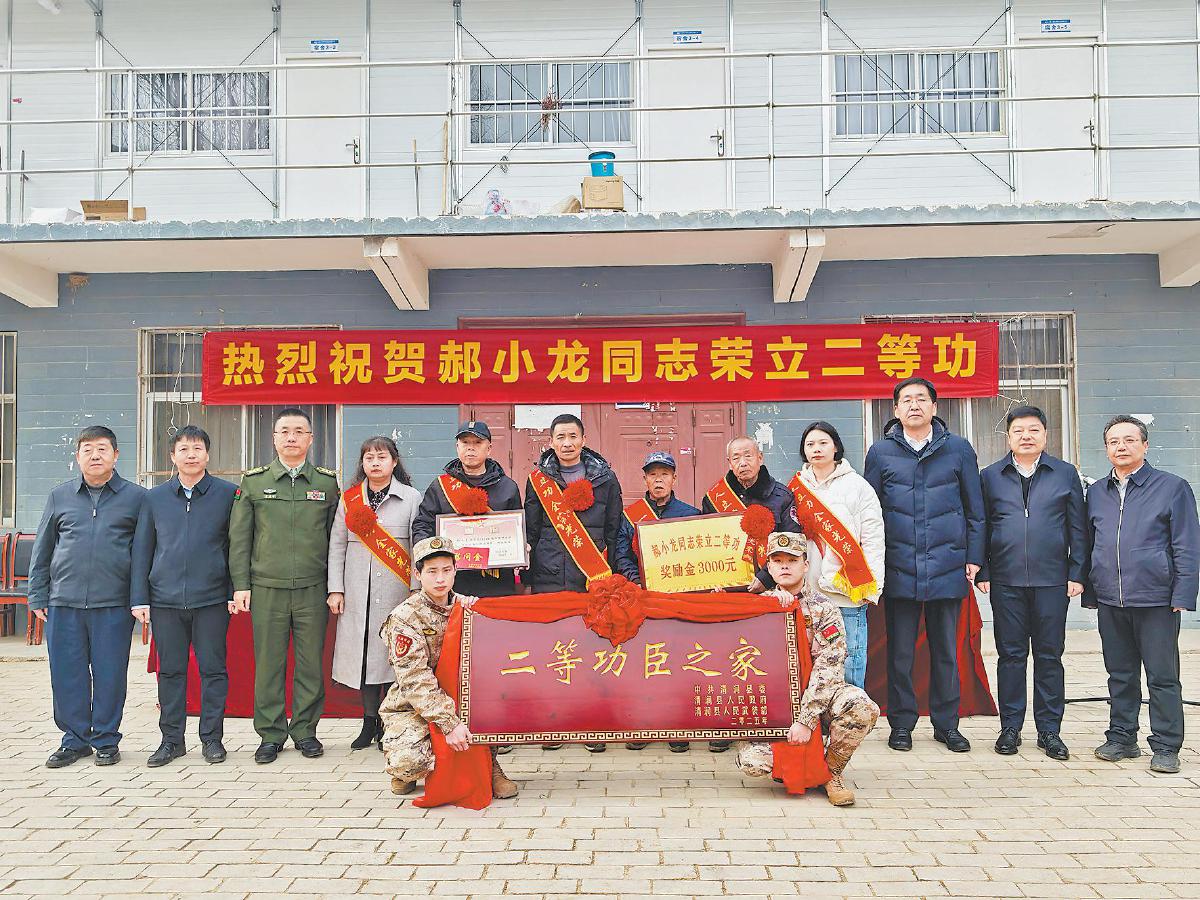 本报讯(通讯员 马星子 惠子镕)2月24日,为郝小龙家庭送二等功喜报的活动在清涧县石咀驿便民服务中心唐家河村举行。活动中,相关负责人宣读了喜报,并为其家庭送上“二等功臣之家”牌匾以及奖金3000元。