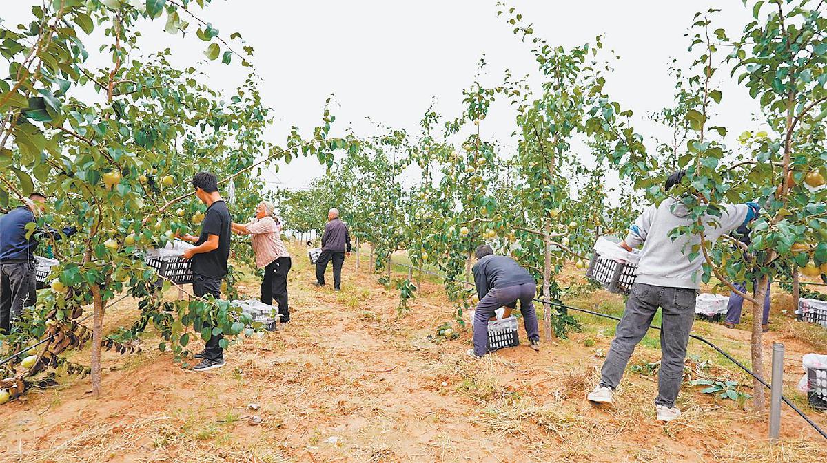 在吴堡县宋家川街道达连坡村青梨种植基地,果农们正在采摘青梨(2024年9月10日摄)。闫宇涛 摄