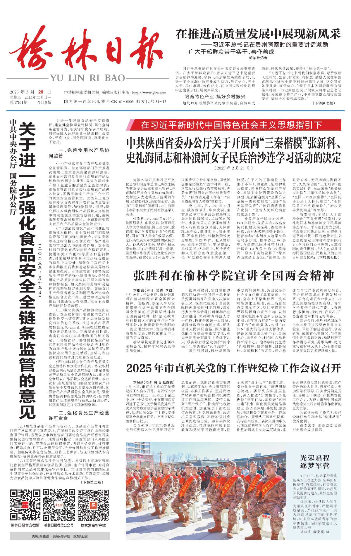 本报讯(记者 吴杰 李雄)3月19日,市委书记、市长张胜利在榆林学院宣讲全国两会精神。他强调,要深入学习宣传贯彻习近平总书记在全国两会期间的重要讲话精神和全国两会精神,把“强化教育对科技和人才的支撑作用”落到实处,加快建设特色鲜明的一流应用型大学,为推动榆林高质量发展、现代化建设作出新的更大贡献。