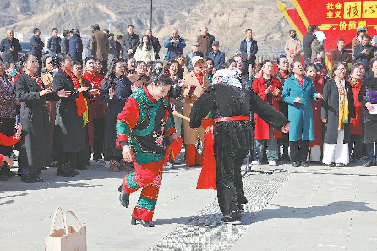 活动中穿插秧歌表演。朱婵 摄