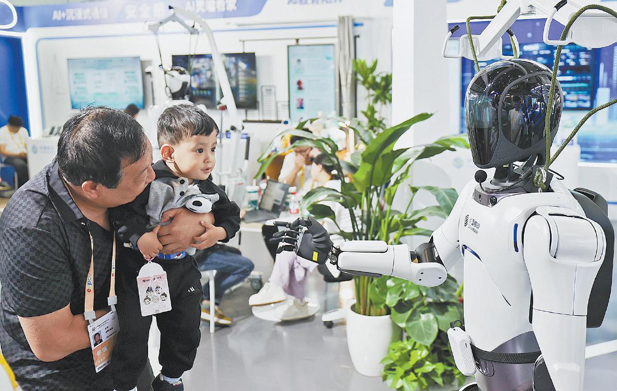和身着千年黎锦的人形机器人握手,穿上“外骨骼”智能设备轻松搬起60斤重物,躺在智能按摩椅上解锁“深度睡眠”……