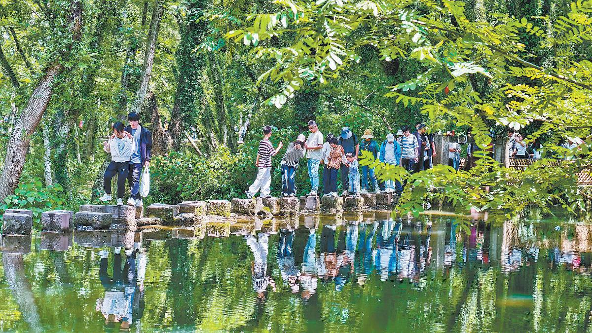 5月2日,游客在安徽省黄山市徽州区西溪南村游玩(手机照片)。